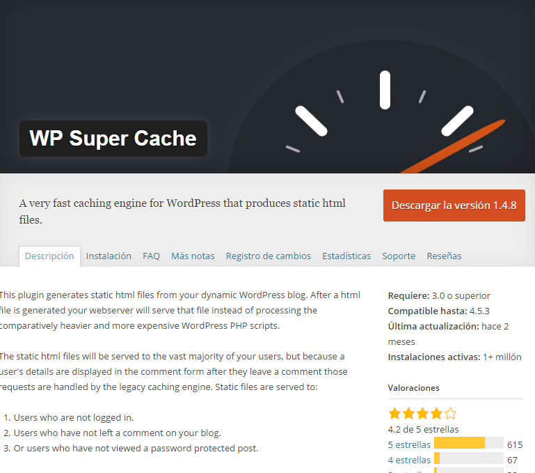 Hay otros plugins de WordPress conocidos por su ligereza de carga, como W3 Total Caché que reduce el tiempo de carga a la mitad. Un resultado que no está nada mal, pero que se ve superado por WP Super Cache, que lo acorta hasta 10 veces.