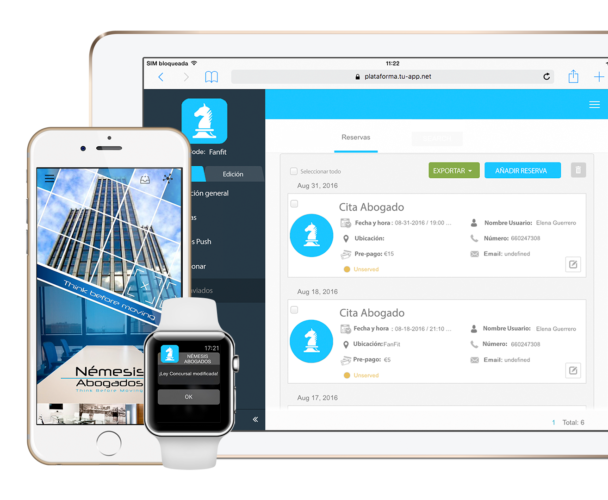 Servicios exclusivos para tus clientes de tu bufete a través de la aplicación de tu despacho de abogados. Añade toda la información de tu despacho, noticias, videos, tu portal especializado... Tu cliente sentirá el apoyo del servicio de tu despacho en su palma de la mano.